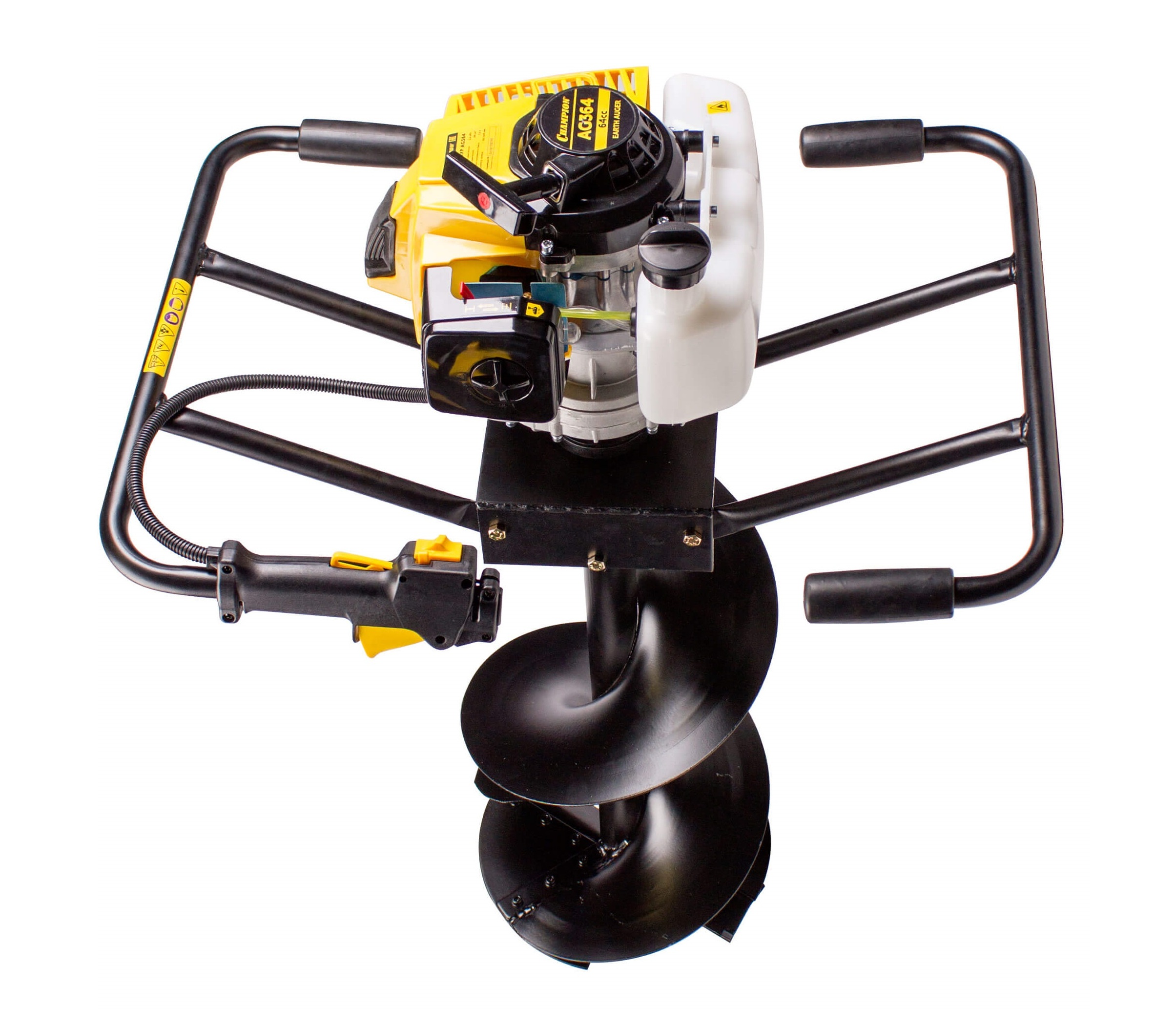 Мотобур CHAMPION AG364 используется для бурения отверстий в грунте под посадку деревьев, установку столбов, для проделывания лунок в природном льду. Работает с почвенными шнеками различных диаметров и шнеками для льда. Удобен в использовании. На одной из ручек расположен курок газа. Рама обеспечивает защиту двигателя от механических повреждений. Для работы с мотобуром необходимо два оператора.